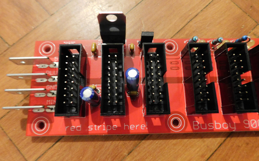 The new version of the Busboy 9000, a small format, 9 position shrouded header busboard for eurorack cases.