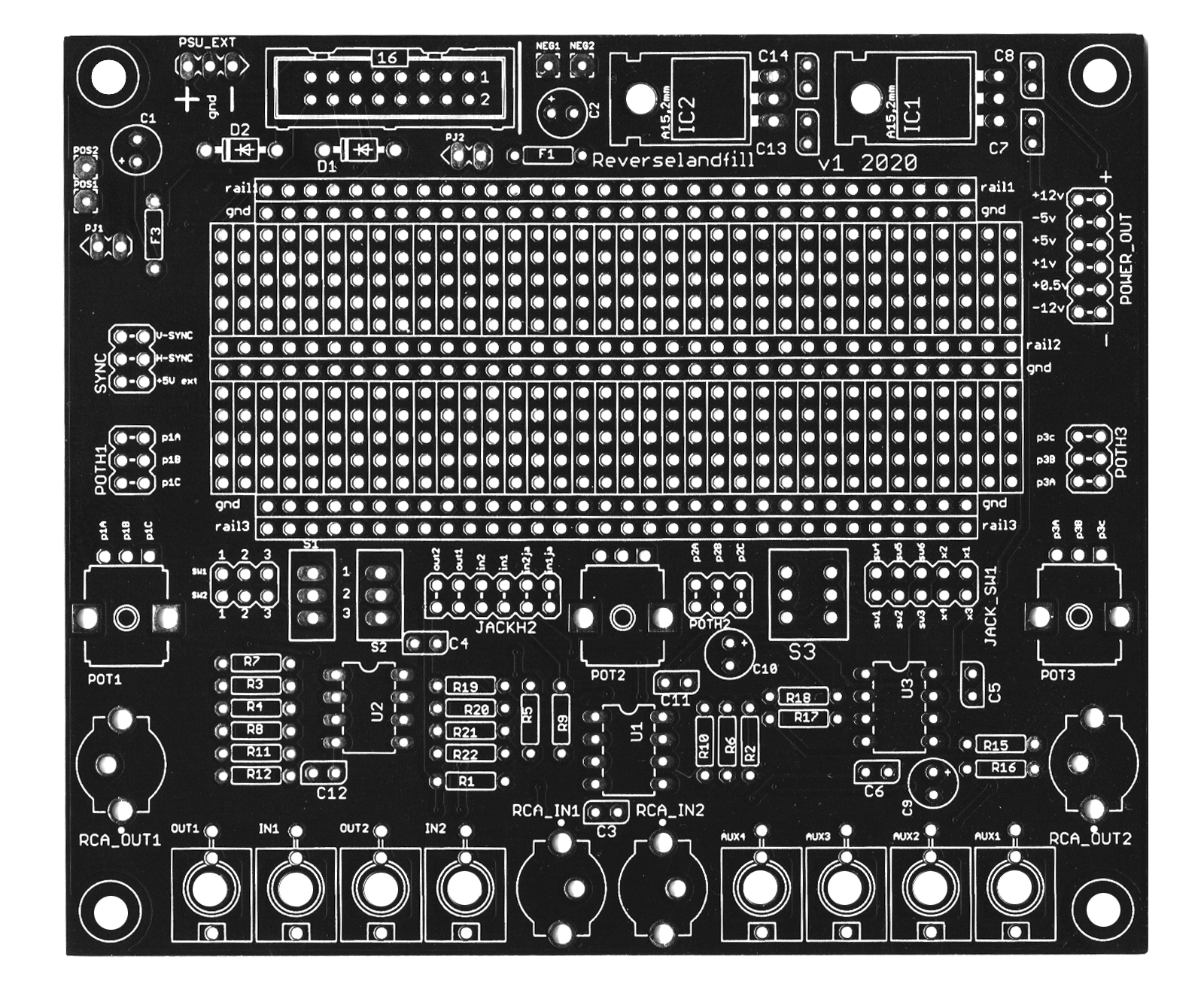 This buffered sync busboard is designed for connecting several Cadet / DIY modules that use the 14 pin sync bus.
